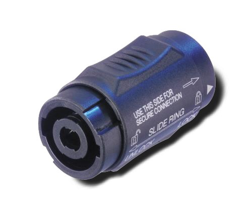 4-napainen jatkoliitin kytkee yhteen 2- sekä 4-napaisia Speakonjohtoja.