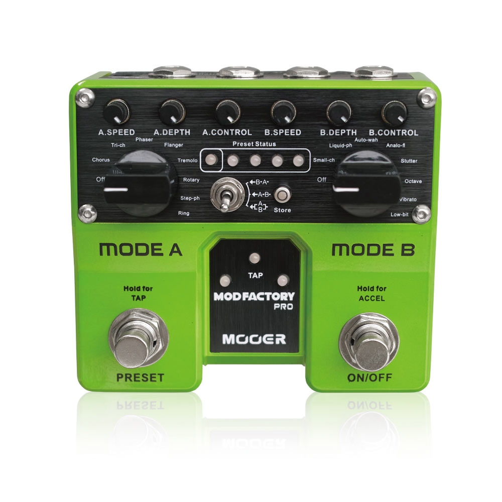 Mooer Mod Factory Pro sisältää 2 erittäin laadukasta digitaalista modulaatio-efektimoottoria ja tarjoaa stereoulostulon ja paljon muita ominaisuuksia erittäin pienessä koossa.